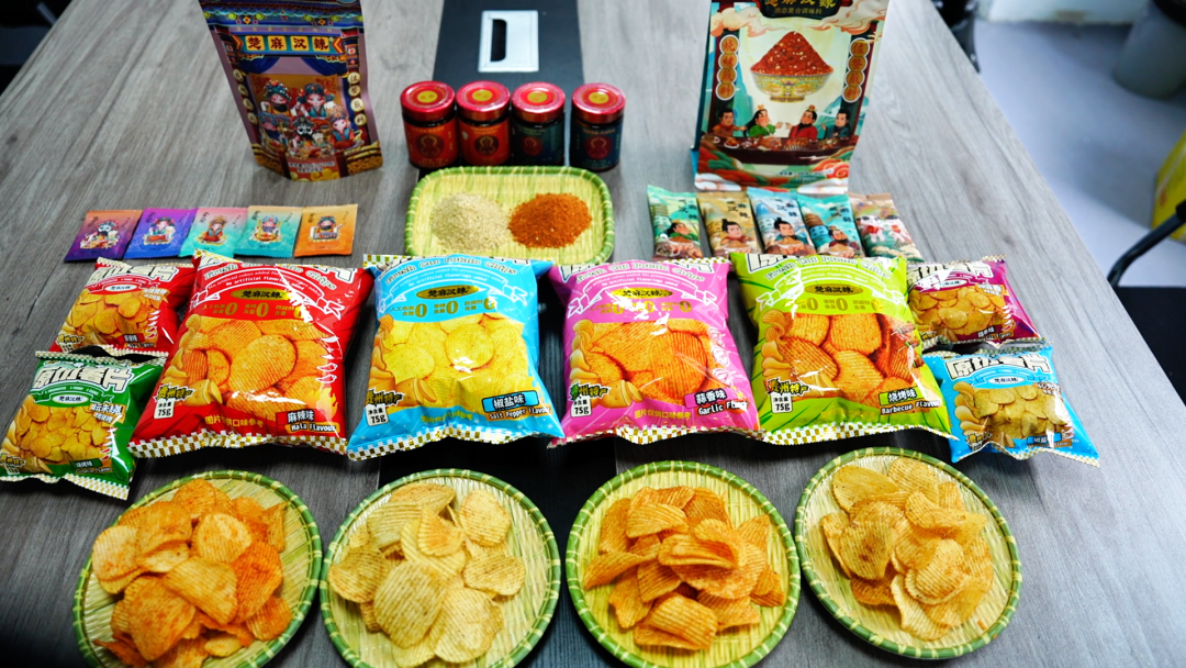 在公司展厅,各式口味的原切薯片、辣椒面等产品陈列有序。与往届相比,本届广交会上,楚麻汉辣公司的核心竞争优势聚焦于原切薯片的“0添加”配方——承诺不添加任何色素、香精和防腐剂。